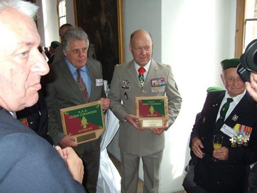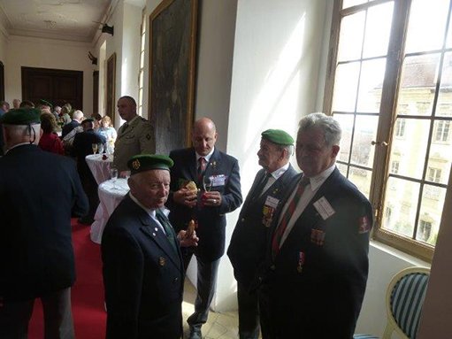 Der Kommandierende General der Fremdenlegion Général MAURIN sowie Der Hausherr von Schloss Schillingsfürst: S.D. Fürst Constantin Hohenlohe zu Schillingsfürst Und der General der FSALE Général GAUSSERÈS Und Abordnungen der Amicalen von Deutschland und Österreich